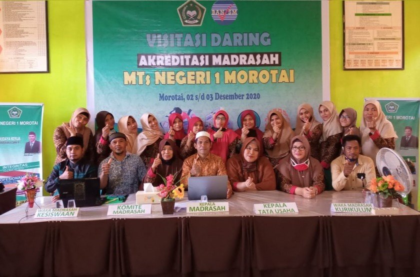 Morotai - Madrasah Tsanawiyah Negeri 1 Morotai (MTsN 1 Morotai, mulai hari ini mengikuti kegiatan Visitasi Daring untuk Akreditasi tahun 2020. Pelaksanaan visitasi daring dilaksanakan pada tanggal 2 s/d 3 Desember 2020. Tim assesor yang melakukan visitasi pada MTs Negeri 1 Morotai yaitu bapak KADER FABANYO dan bapak MUHAMMAD SABTU.